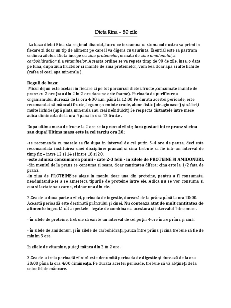 Micul dejun in dieta rina este acelasi in fiecare zi si poate fi format din: Din dorinţa de a avea o comunitate cât mai utilă şi cât mai plăcută te rugăm ca răspunsurile tale să. Până în ora 12:00, poți consuma o porție mare de fructe, chiar şi combinate.micul dejun in dieta rina indicat pe toată perioada celor 90 de zile este alcătuit doar din fructe proaspete alegeți sa mâncați cu cel putin 2 ore înainte de ora prânzului fructe de sezon, 1 mango, ananas, 1 cana de cireșe sau. Ce ar trebui sa consumi. La dieta di 2 settimane, florence, italy.