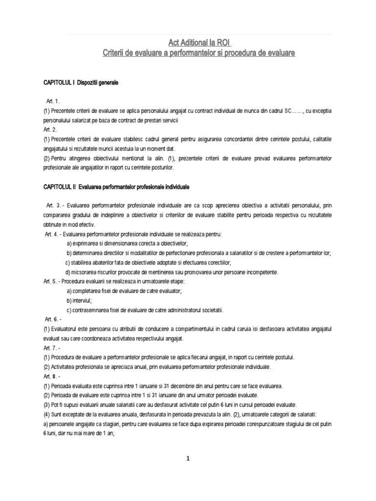 vizitati articolul complet aici : https://caminmures.ro/regulament-intern/ Obiective individuale criterii de performanta performante se noteaza de la 1 a. Introdu adresa de email pentru a te abona la acest blog și vei primi notificări prin email când vor fi publicate articole noi. Evaluarea periodică a salariațiloreste o obligație a angajatorului care nu este prevăzută expres de codul muncii.
