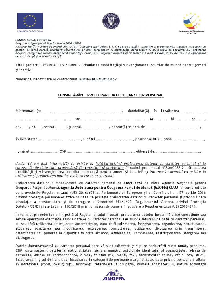 Model Acord Privind Prelucrarea Datelor Cu Caracter Personal Salariat